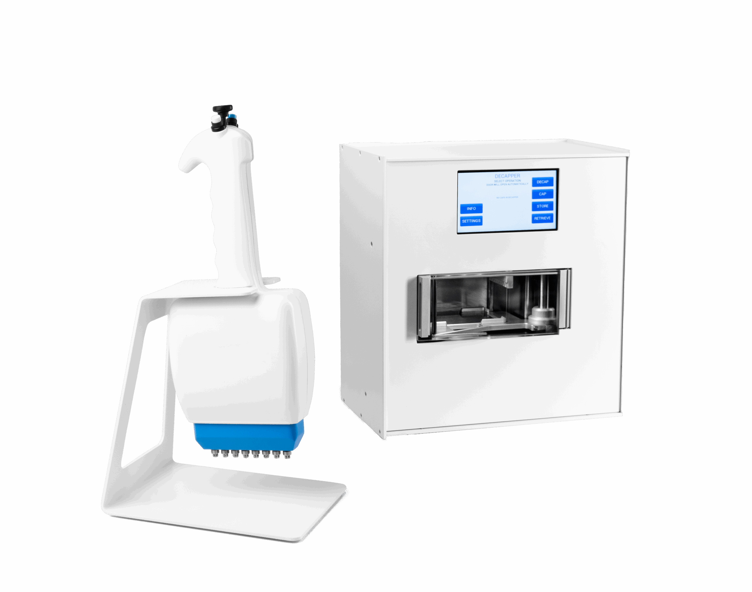 Fast screw cap handling: Easily Decap / Recap a single tube or an entire rack rapidly